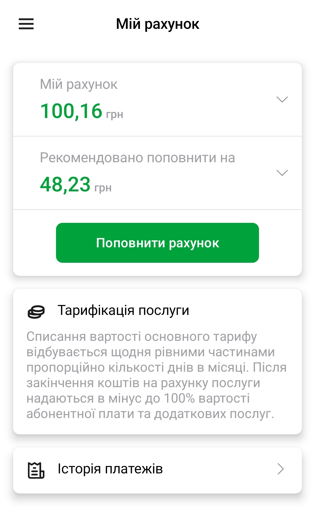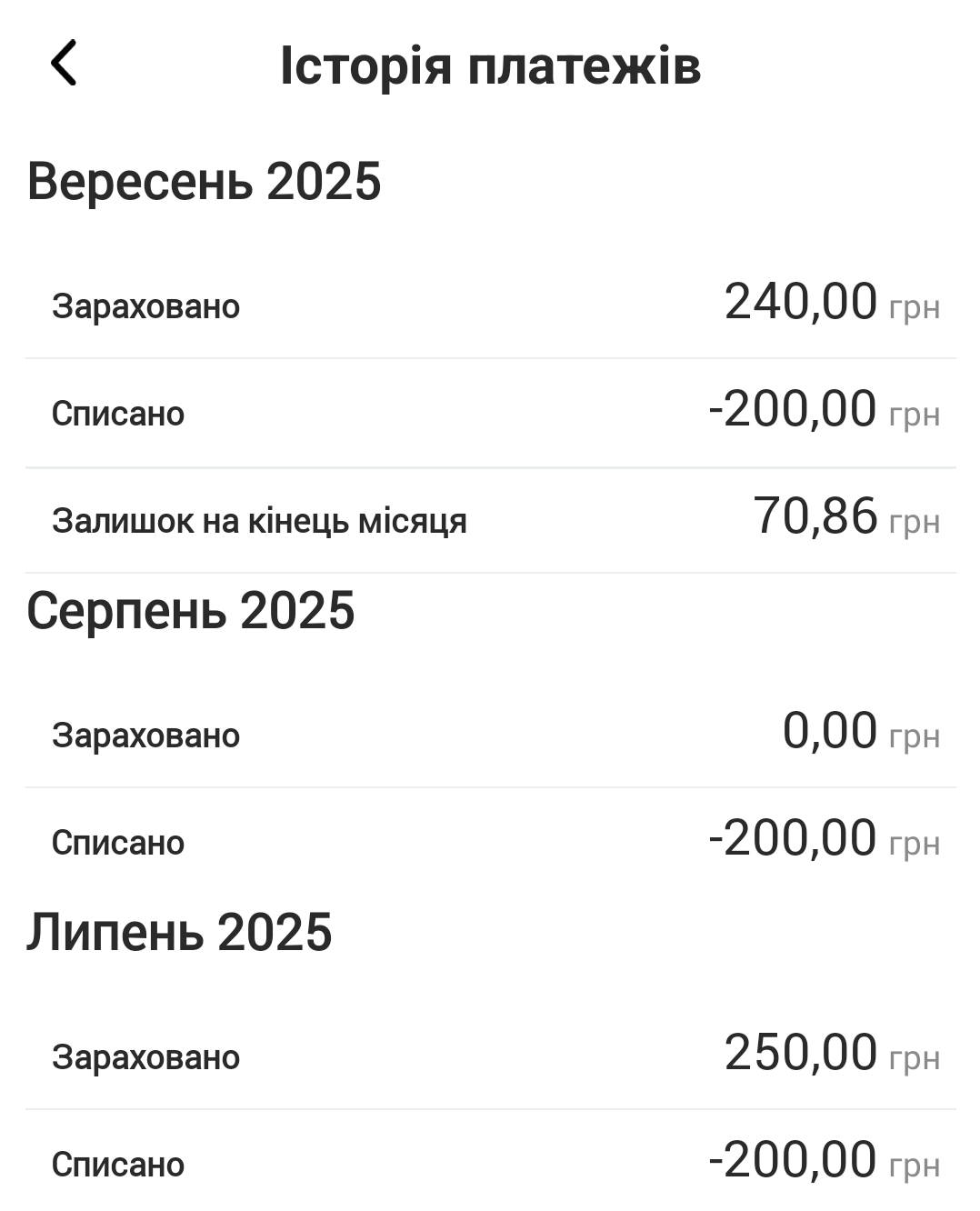 У розділі «Рахунок» натисніть на кнопку «Історія платежів».